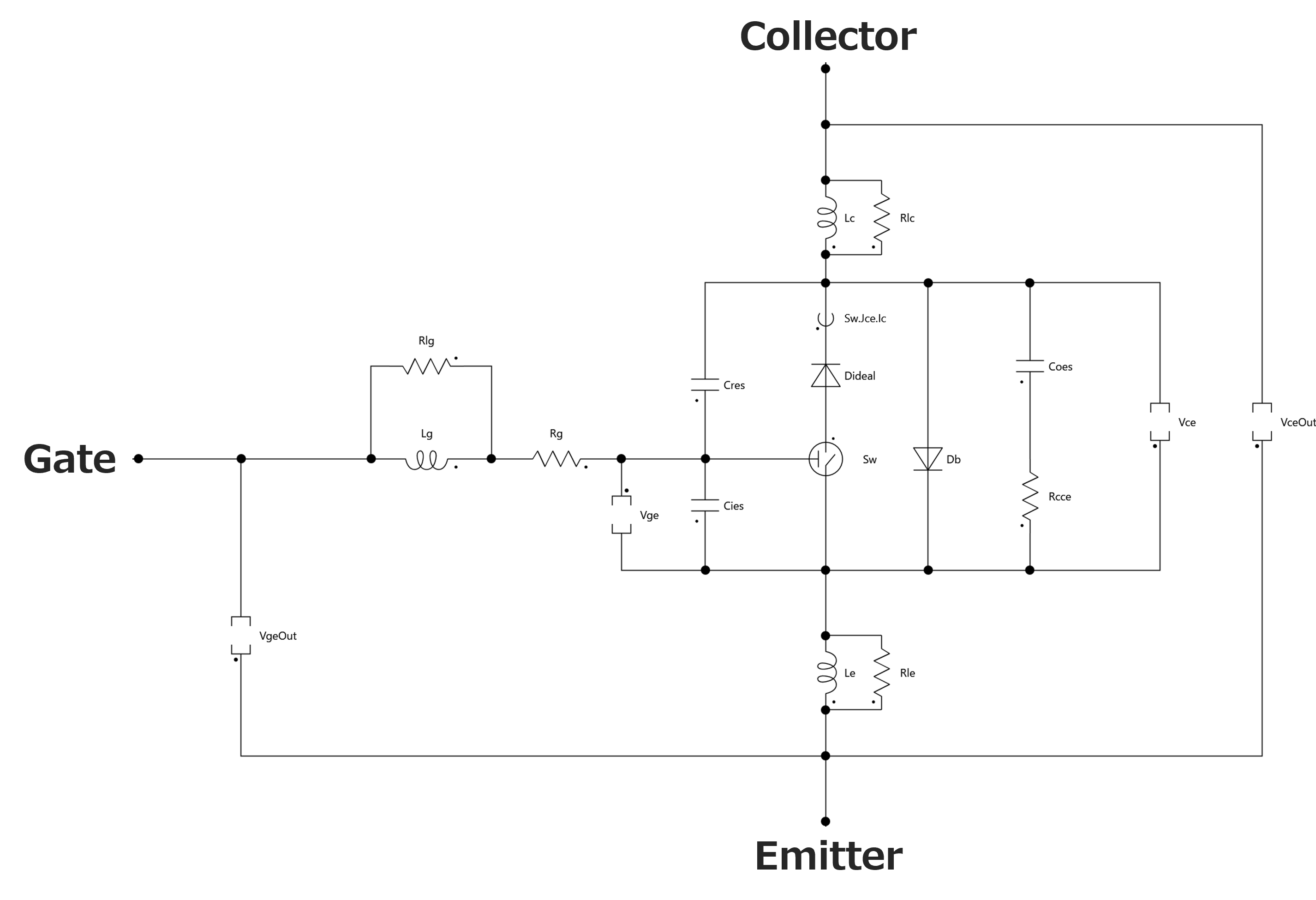 Scideamの詳細IGBTモデルでは通常、内部回路に帰還容量Cresを含んだモデルで解析を行っております。