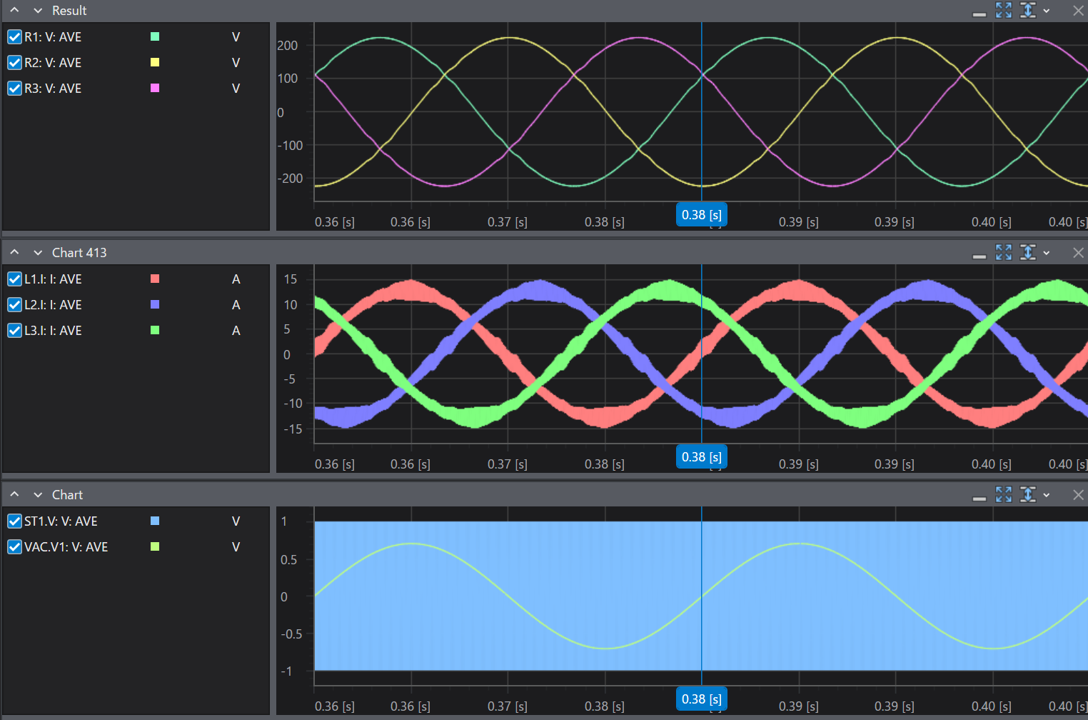 シミュレーション時間は400msとし、360ms以降を確認した場合次のような波形を確認することができます。