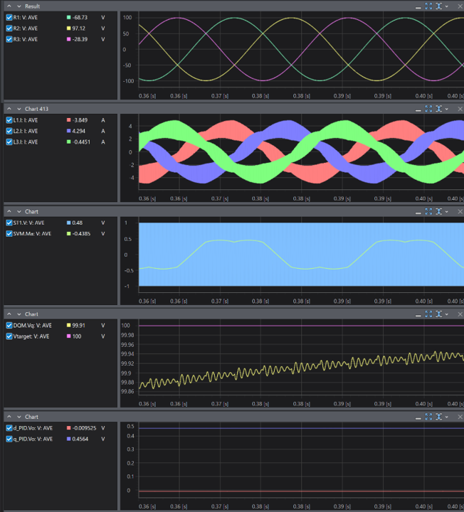 出力電圧をDQ変換し、d軸、q軸に対して制御を行う3相インバータのサンプル回路です。