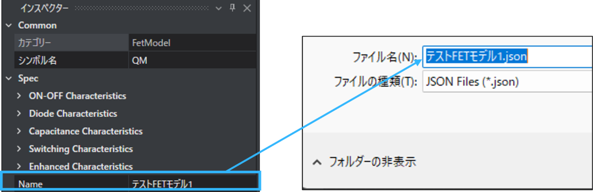 詳細解析用素子はスペックに入力したパラメーターをデータファイルとしてエクスポートしておくことができます。