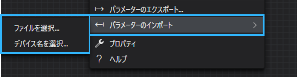 ファイルまたは、デバイスを選択することでパラメータを読み込ませることができます。