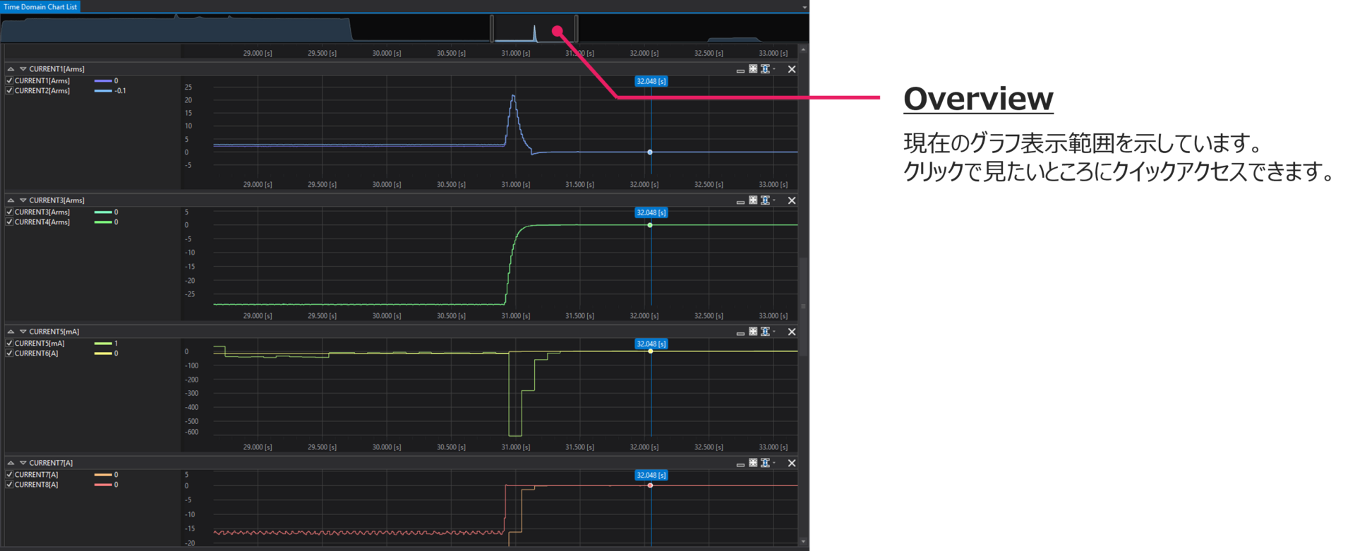 上部にあるOverviewに系列をセットすることで、系列の変化が一目でわかるようになります。